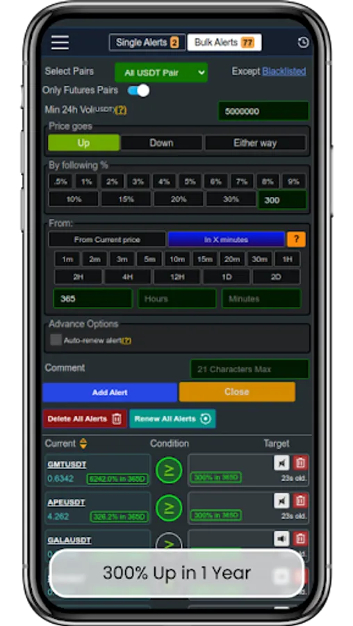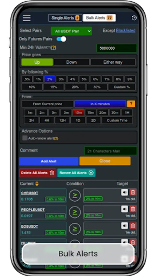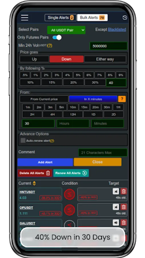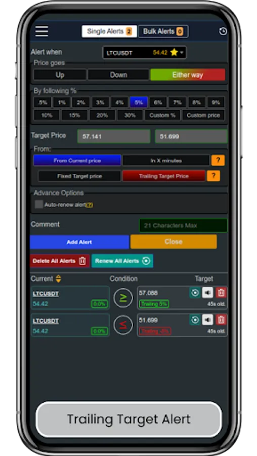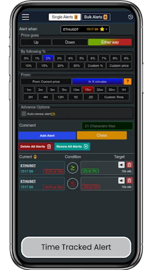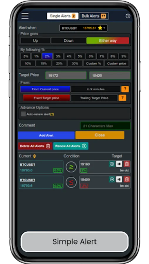 [*] Set alert price using Percentage Increase/Decrease buttons.