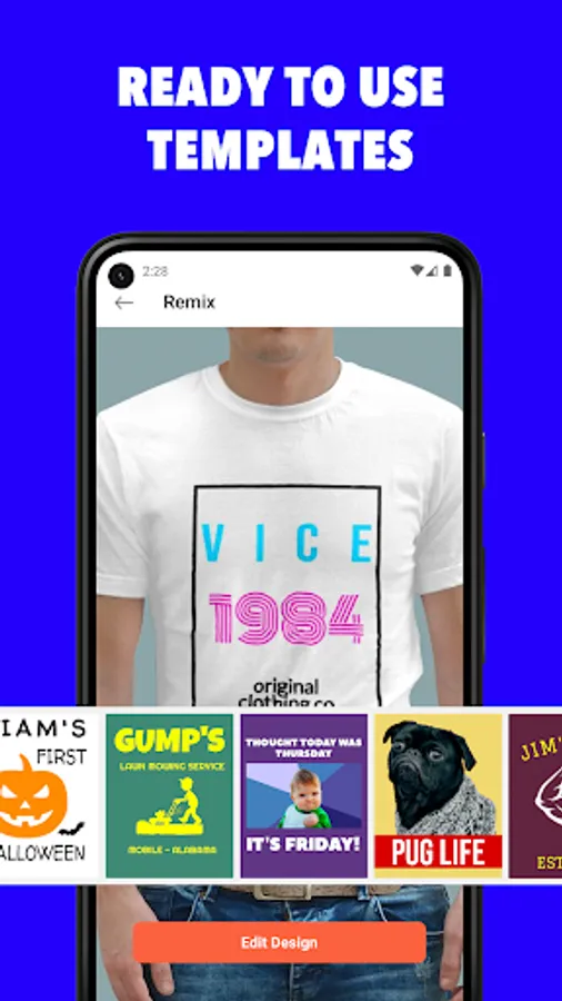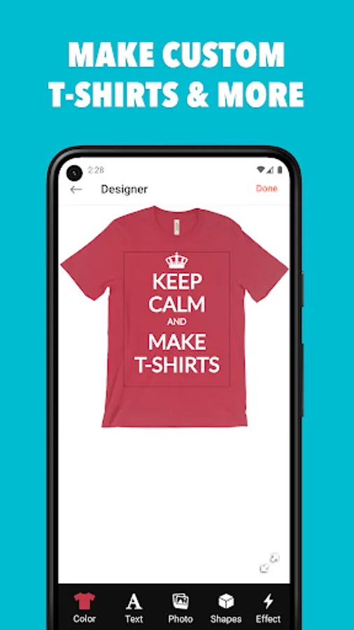Make your own custom t-shirts with our easy to use t-shirt design app