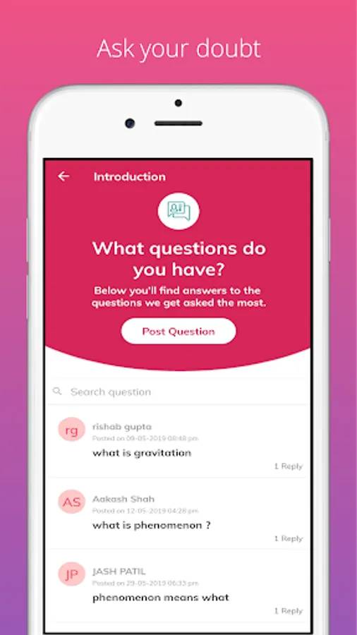 We believe learning happens through asking questions, so let student ask question through doubt on chat option and these doubts will be resolved by our team of expert teachers instantly.