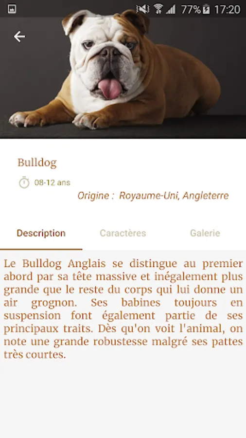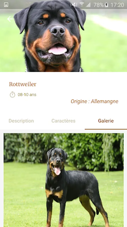 Several breeds are described in our application: You have the description of the legendary pitbull, the doberman, the chihuahua of mexico, the Pug, the German Shepherd etc.