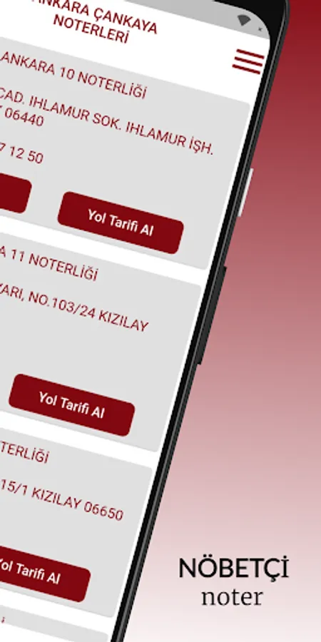 With this application, you can reach the address, telephone, map and other information of the notaries on duty in Turkey's 81 provinces with a single click.