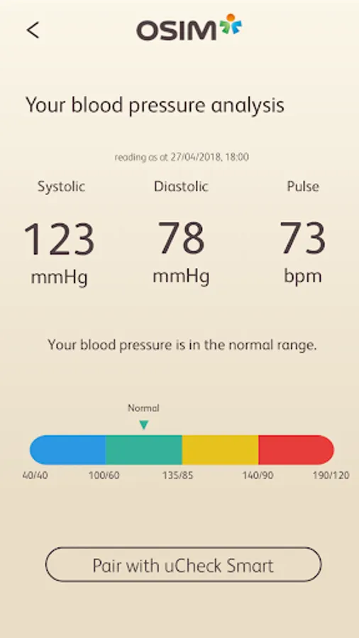 Leveraging the advancement of smart devices and mobile app technology, OSIM Check & Measure App pairs seamlessly with OSIM uCheck Smart to provide you with a holistic view of your blood pressure.