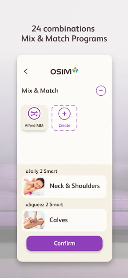 Create up to 24 of your very favorite massage programs by simply combining auto massage programs from uJolly 2 Smart and uSqueez 2 Smart.