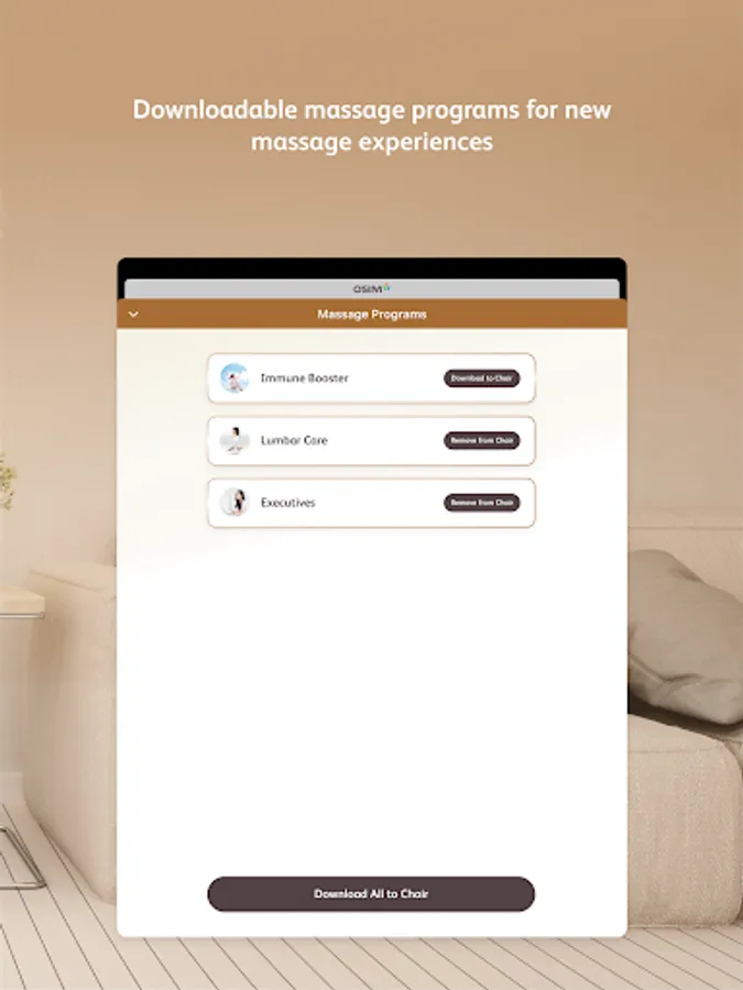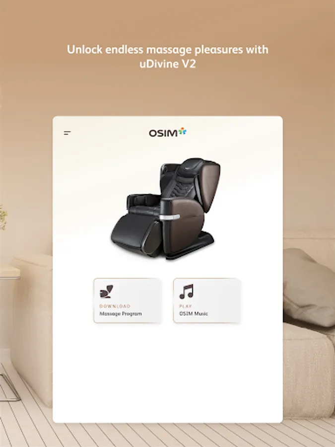With the OSIM uDivine V2 App, download latest massage programs into your uDivine V2 massage chair and unlock new massage experiences.