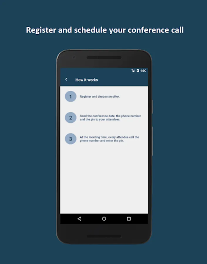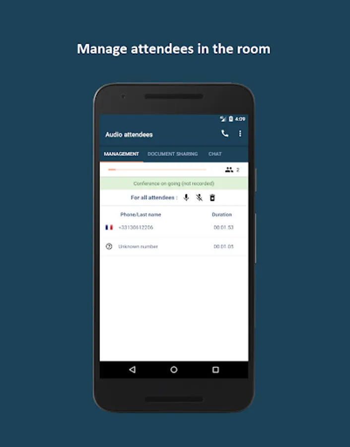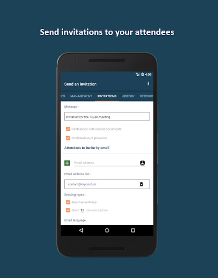 Following your registration, you will receive a national phone number and a pair of codes (one for the organizer, one for the participants) by email. You will have to send them to your participants in addition to the date and time of the conference .