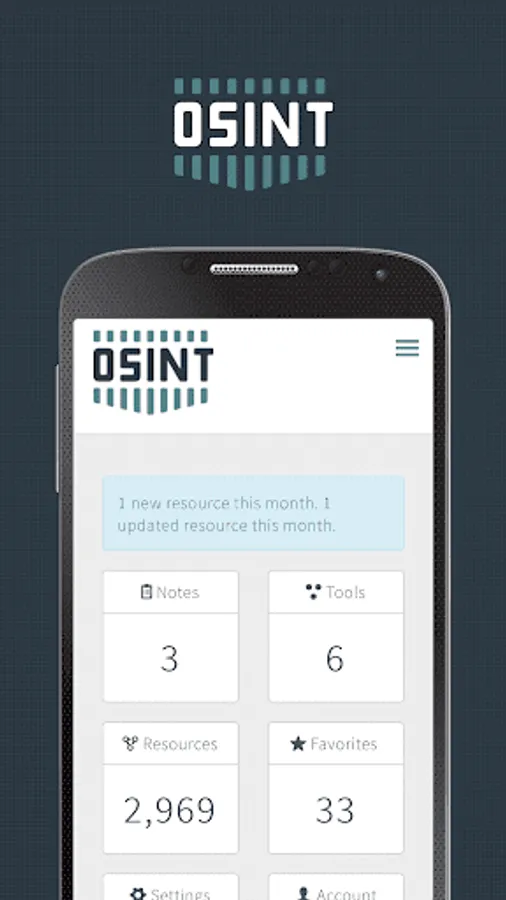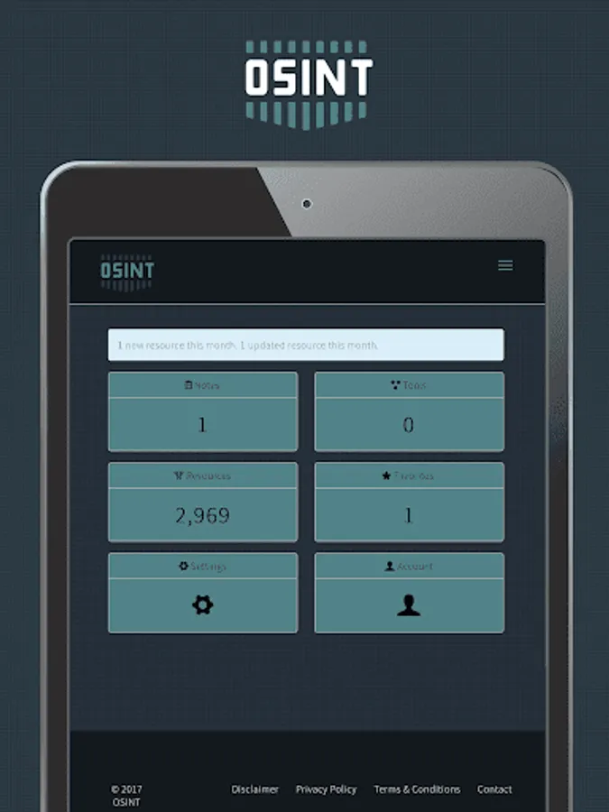 There are also in-app alerts displayed at the top of the home screen when new resources have been added or updated, providing you with the most up-to-date open source intelligence information available.
