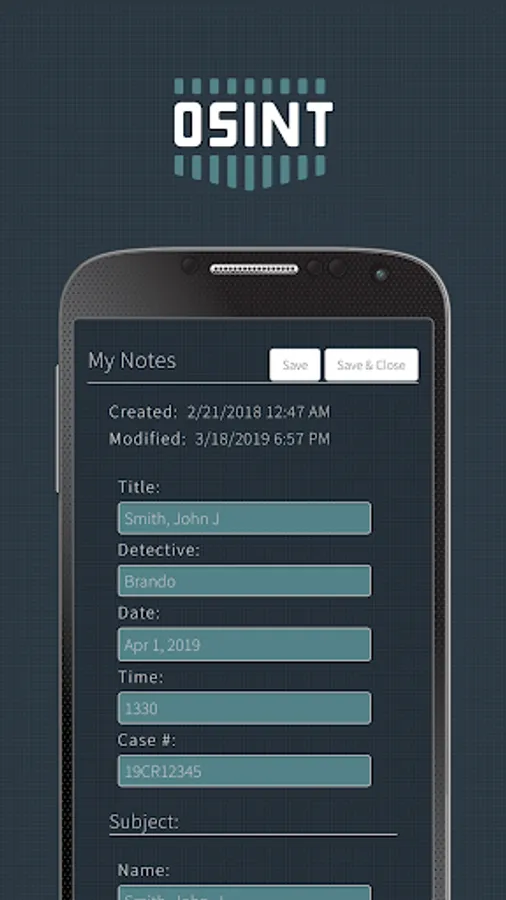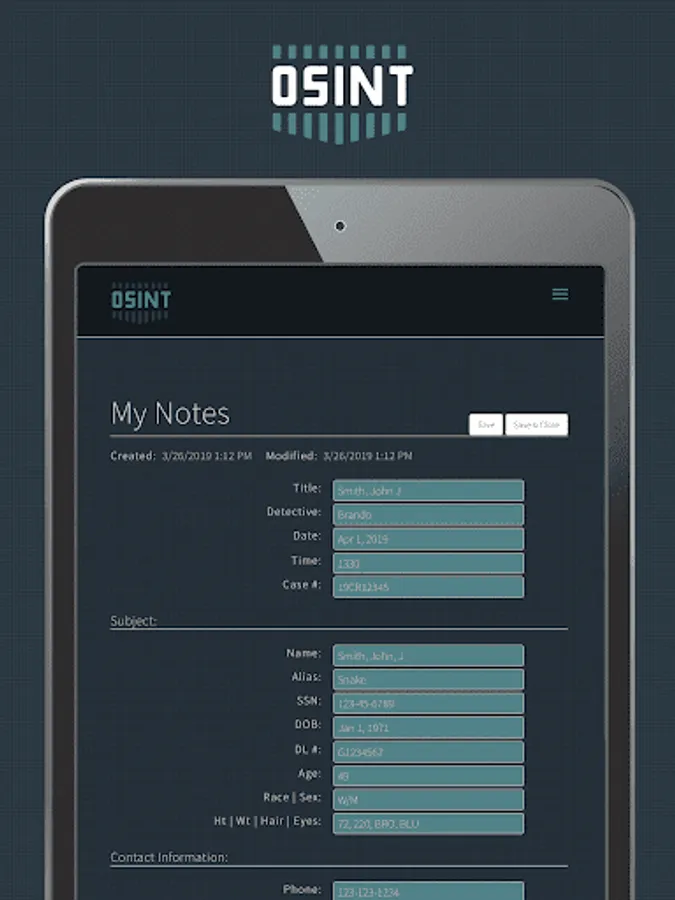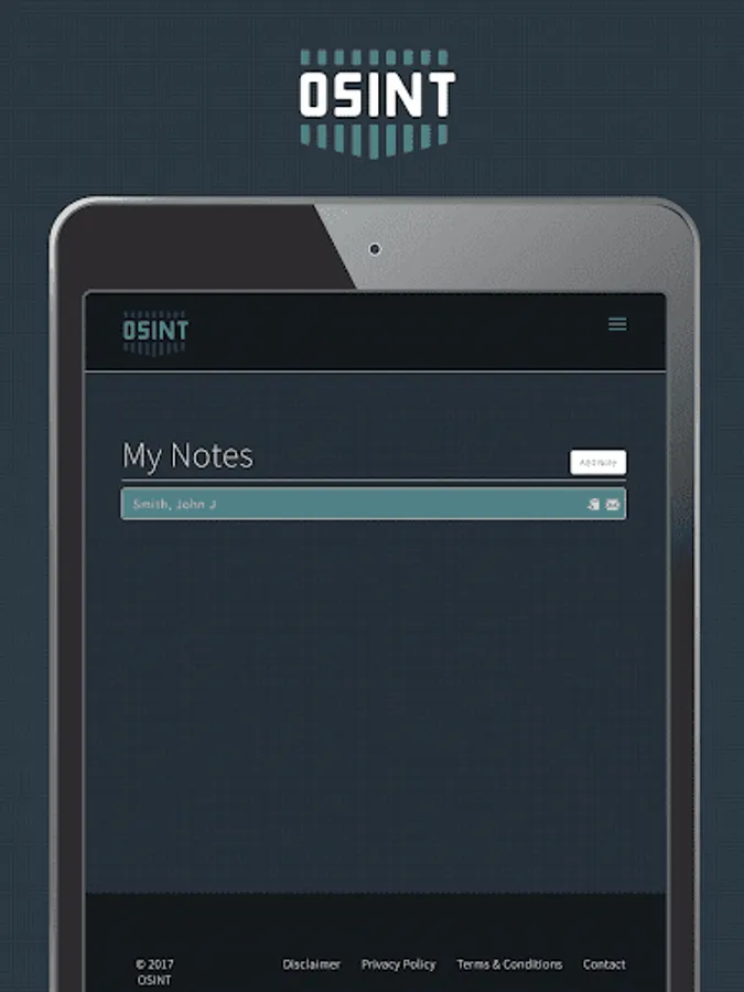 The app has a thorough “Notes” section in which you can track information relevant to multiple investigation at once. You can then share the information by emailing it to yourself or others. You can also easily copy the data to be pasted wherever you like. OSINT-D cannot see nor collect any information you enter.