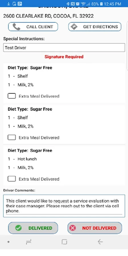 * Capture extra meal deliveries that client wasn't scheduled to receive.