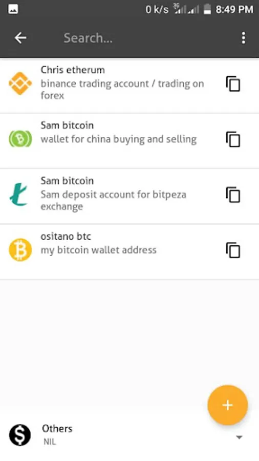 You can easily save a record and add several wallet addresses naming them with labels and then search to get the wallet address easily anytime.