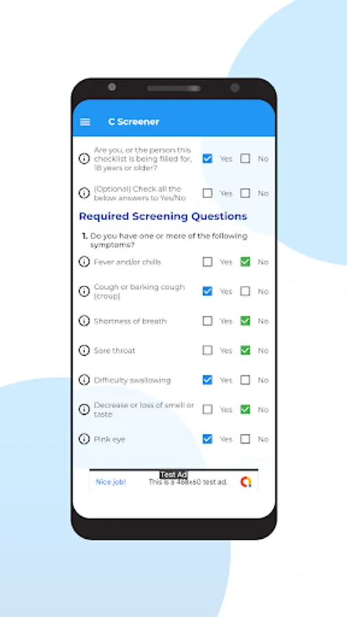 C-Screener is aimed to provide a symptom checklist that helps keeping a organisations safe and secure. Users can optionally share information with their employers or administration via email, SMS etc. The app includes the following features: