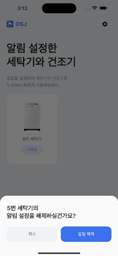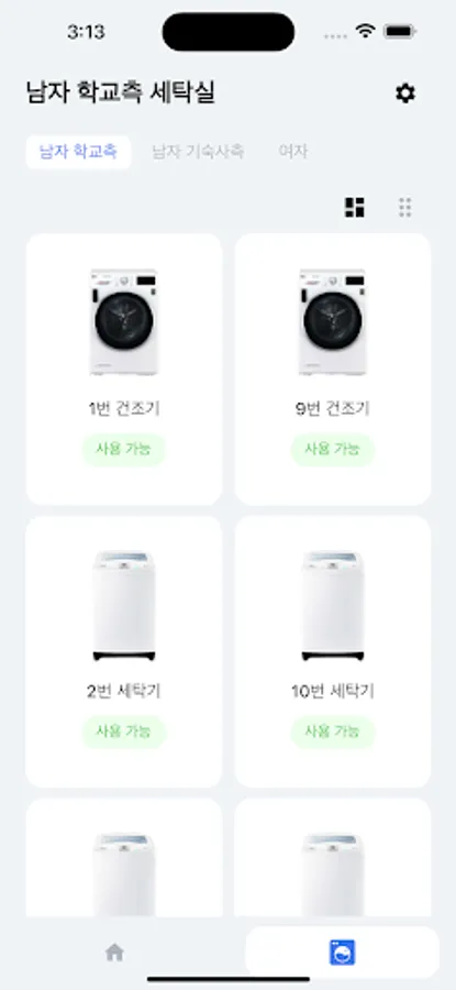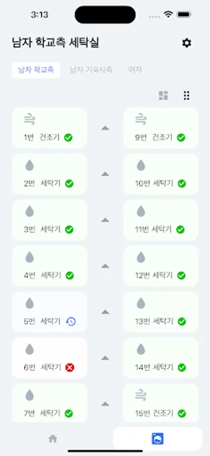 You can check the current status of washing machines and dryers in the dormitory of Daedeok Software Meister High School.