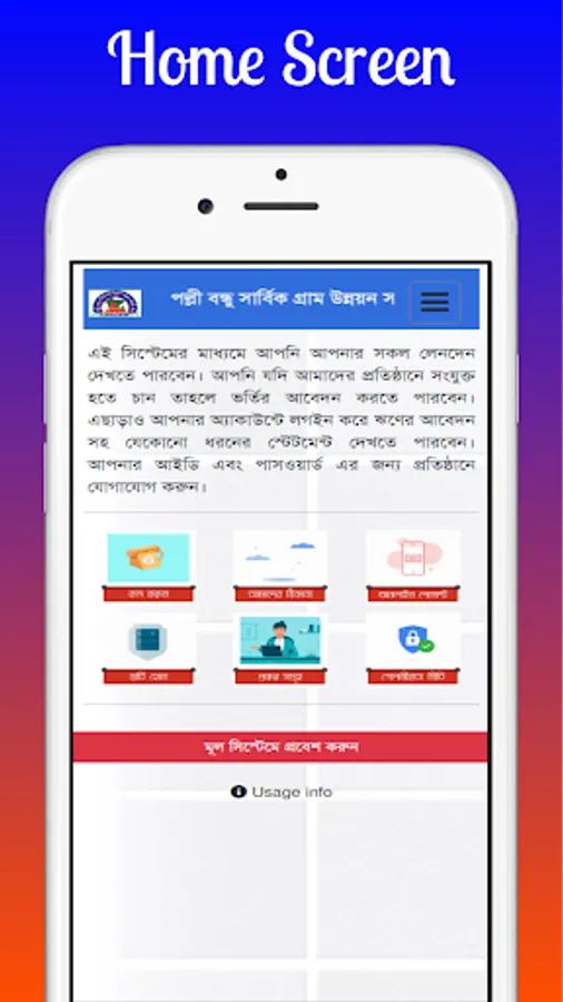 Palli Bandhu: “Palli Bandhu” software is developed for the microfinance industry. This mobile application is not a native mobile application, it's a web application that “Palli Bandhu” has bought from “Somity Keeper” (a renowned software company in Bangladesh) for their business purposes. Through this software “Palli Bandhu” manages all their business activities and all their esteemed customers can use the software as per their need. This software is developed with PHP Laravel Framework. Security has been given special importance during the development of this software so that users can use the software safely.