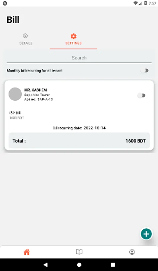 • enable/ disable tenants' recurring bills.