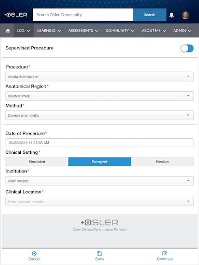 Osler is a verifiable record of your procedural & skills training, combining your online learning, a clear history of your activity, outcomes and feedback, and sign-off by a supervisor.