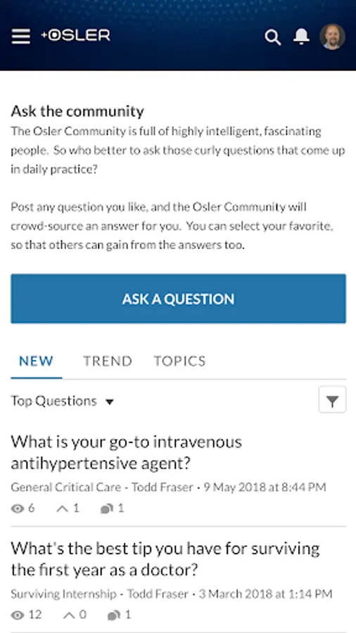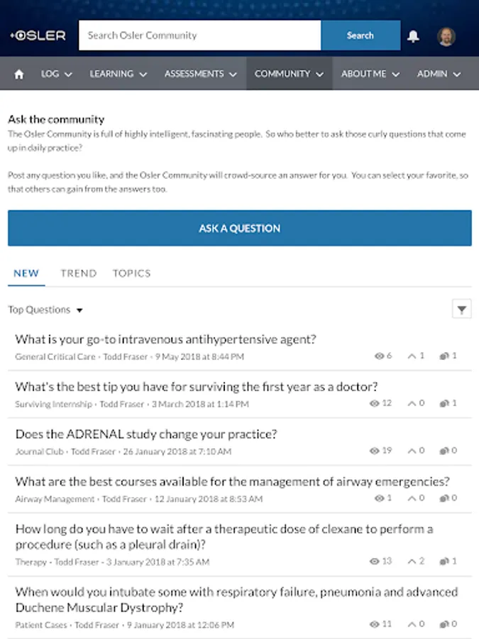 Send messages, participate in a group conversation, share your thoughts or ask a question of the Osler Community.