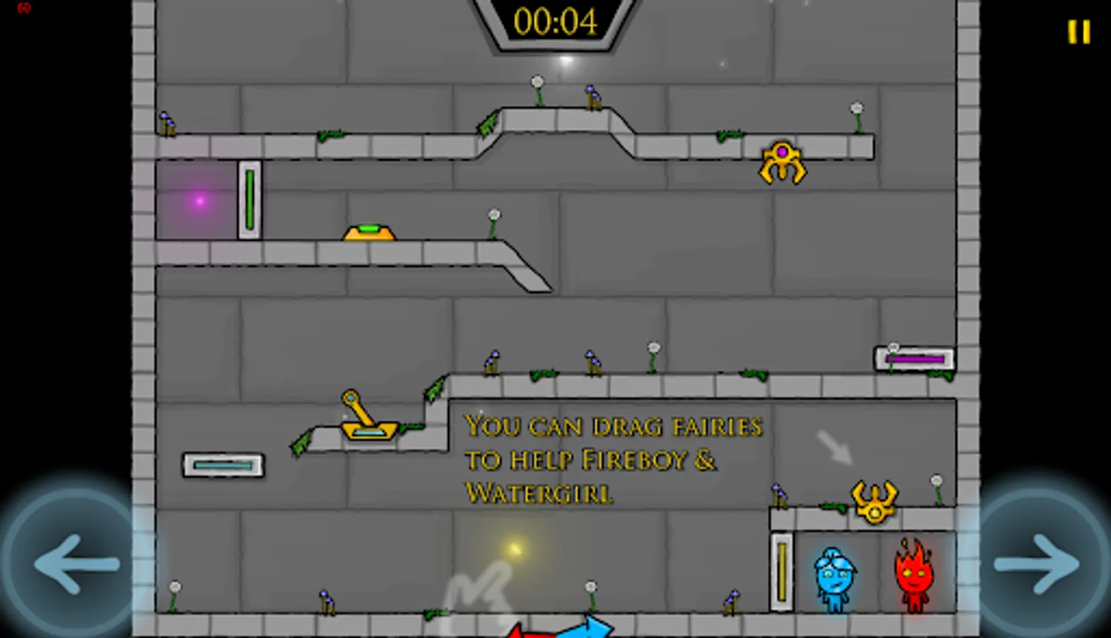 Fireboy and Watergirl need help to explore this new temple. This time fairies will help them solve the puzzles, beat the times and collect all the diamonds!