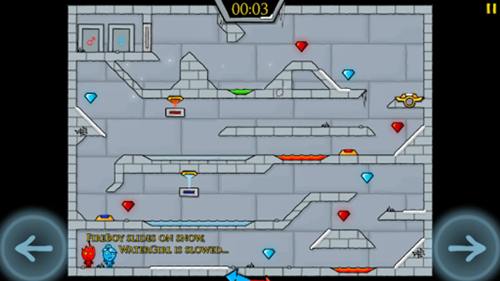 Fireboy and Watergirl need help to explore the Ice Temple. Solve the puzzles, beat the times and collect all the diamonds!