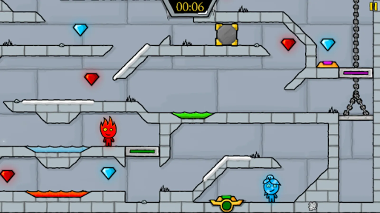 Freeze water and melt ice to complete these 36 levels of the official Fireboy and Watergirl series