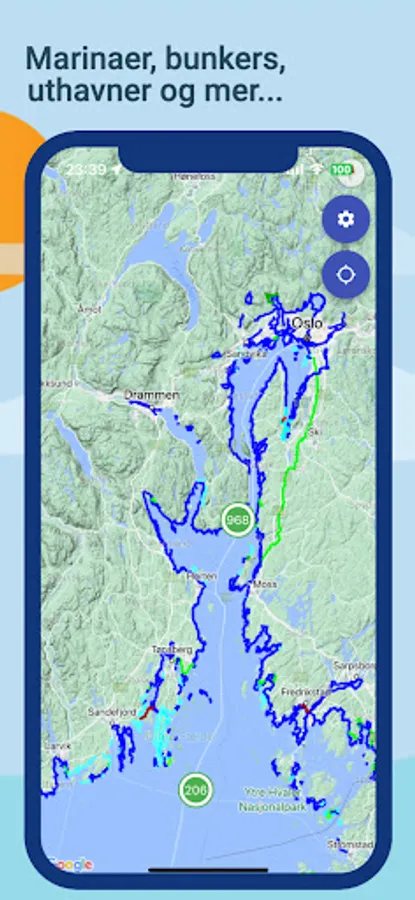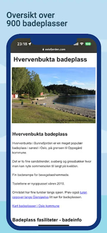 If you let the application use your device's GPS when you are out walking, it will show you your current position on the map, and all the coastal paths and beaches in the area. If you click on any of the coastal paths or markers, you will be given a bit more information, and with the opportunity to find more info on www.oslofjorden.com (unfortunately only in norwegian at the moment).