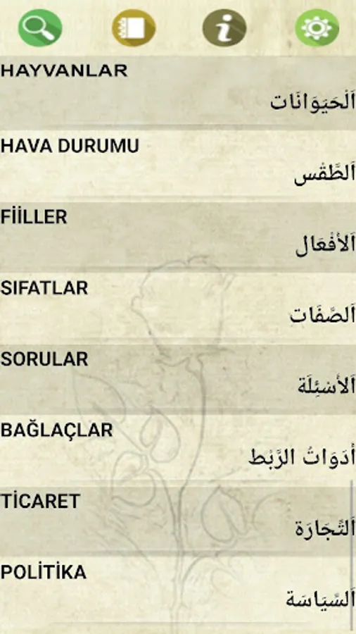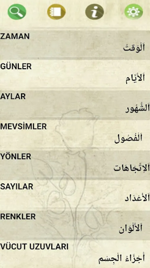 This work with the Faculty of Theology in Turkey, aimed make them comfortable communicating with other foreigners, including several courses in modern Arabic learning students may Arabs first come together and gain practical conversation with the Faculty of Arts and Faculty of Education or its own efforts. When this study, direction, numbers, colors, food, beverages, transportation, personal belongings, education, jobs and tasks, communication, weather, adjectives, under headings such as question and verbs are dealt with 1050 words and phrases. This study contains the basic words and phrases in conversations about daily life necessary, hoping to meet the communication needs of learners Arabic ...