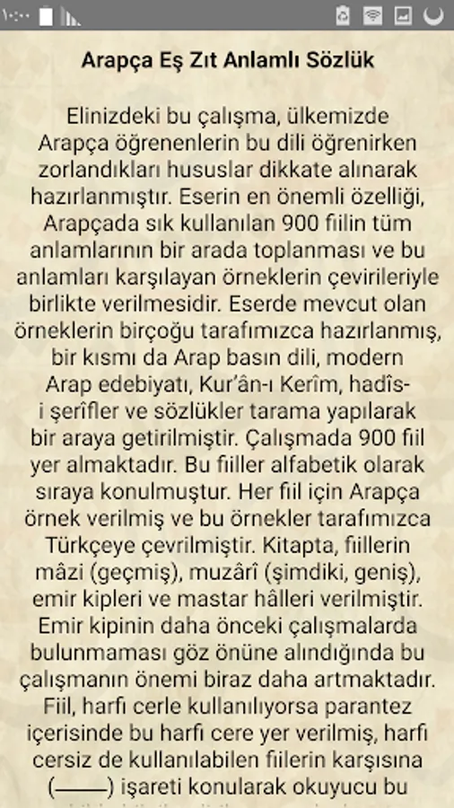 In the preparation of this application we take into account the difficulties that the Arabic language learners find it difficult to learn. The most important feature of the study, is to bring together all the meaning of the verb frequently used in the Arabic language. And we got the examples of each verb from some Arab newspapers, modern Arabic literature and Modern Dictionaries.