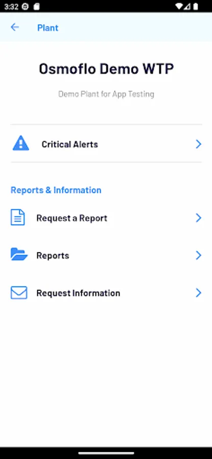 Easily access plant performance information, reports and communicate with Osmoflo’s 24x7 Control Centre, all within the OsmoView app.