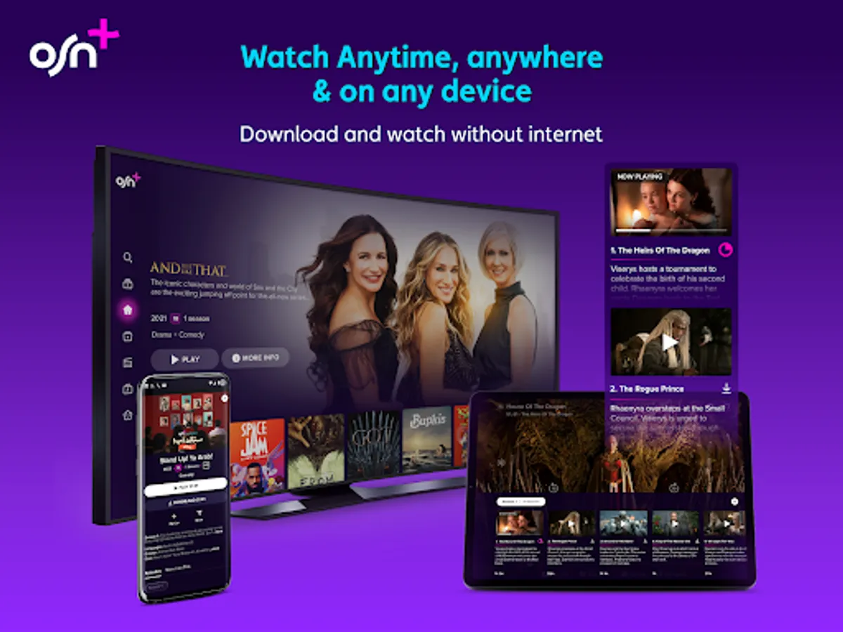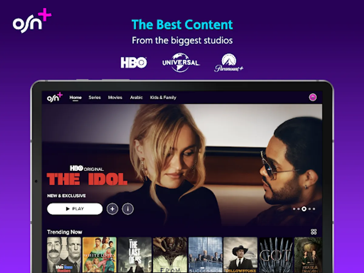 OSN+ is a premium streaming service available in 22 countries which includes your favourite movies and series from HBO, Paramount+, OSN Originals and much more. Explore must-watch TV series, blockbuster movies and OSN+ exclusives in one location. All of the best TV shows, movies, documentaries, lifestyle shows, Turkish and Arabic movies and shows are all yours, available for streaming on any device, anywhere and anytime.