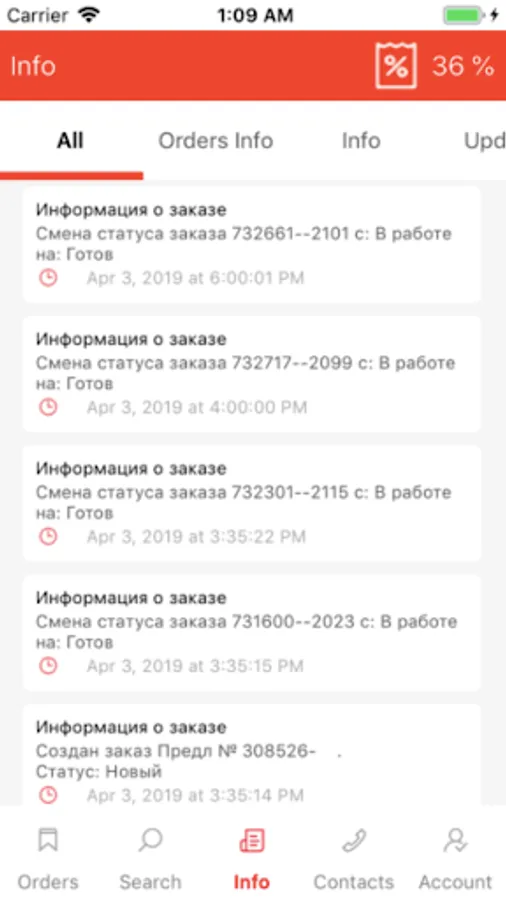 Help customers to track own orders state and status. Information about change orders status, news, actions and others. Help quick find needed order and check him and his status. Help to quick connect to company support.