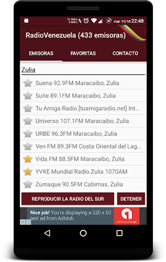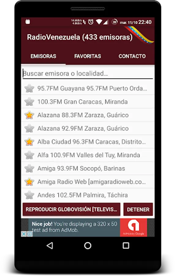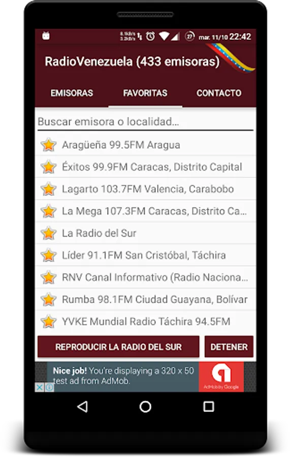 RadioVenezuela has the biggest list of live radio networks and stations.