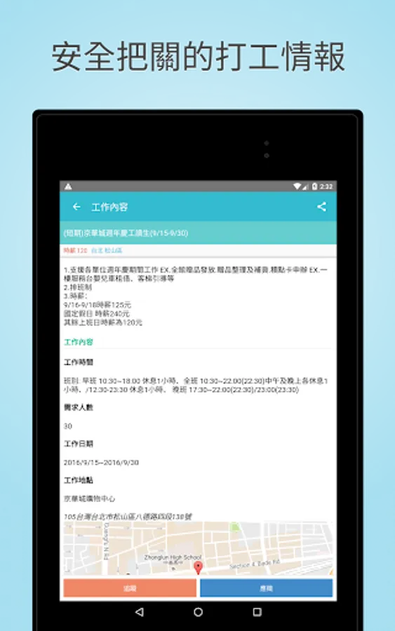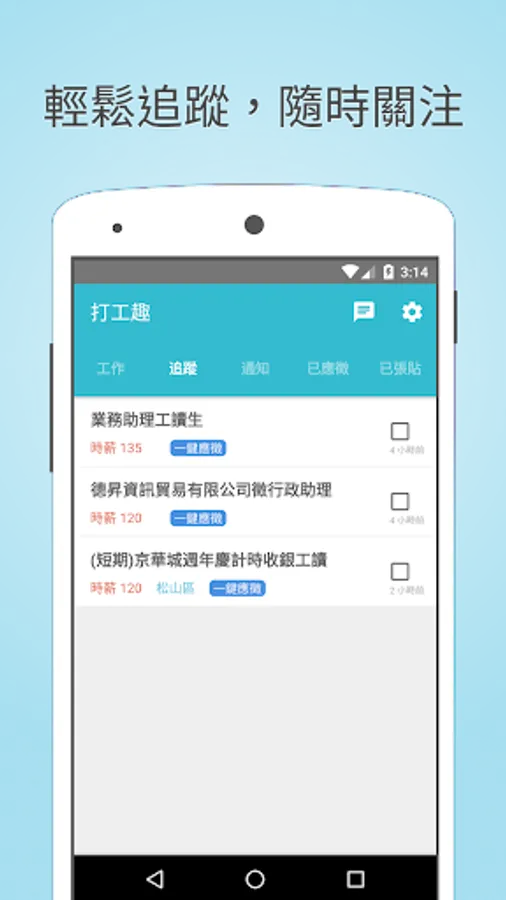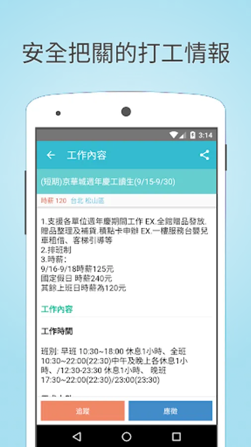 Working interest in the Android App allows you to find the desired short-term work on the phone at any time! Fun to work so that people find the most suitable for short-term work with the shortest possible time, it also provides the easiest way for everyone to quickly find the ideal partner. Working interest of young people in Taiwan is already the most used short-term information exchange platform, as long as you want to find short-term work, part-time, work-study or have any manpower needs, you definitely interesting work is the best option.
