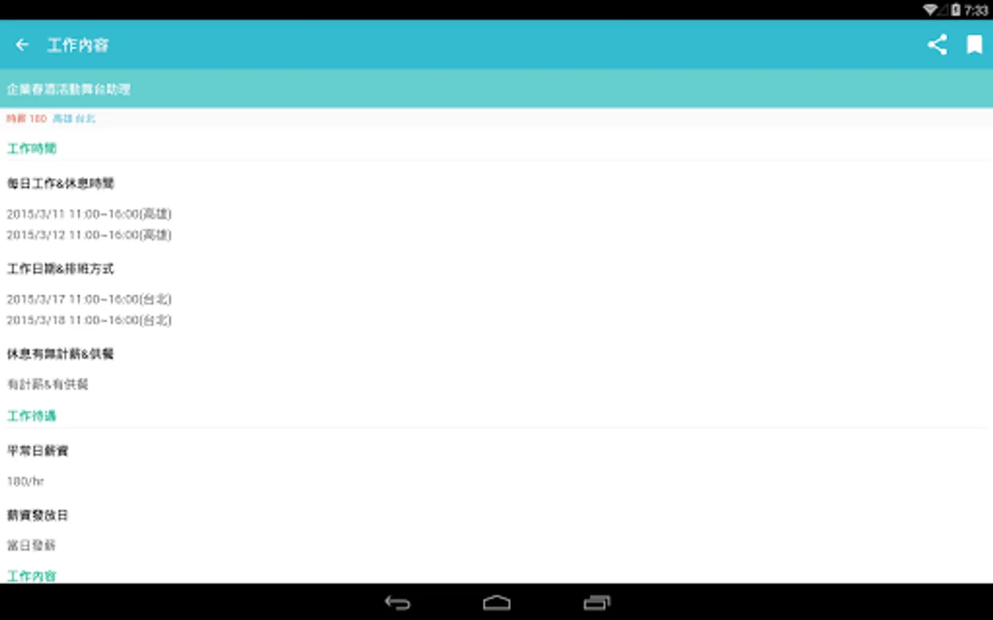 Working interest in sorting out clear and detailed content of the work, a lot of information to help you save time screening to quickly find work opportunities you want.