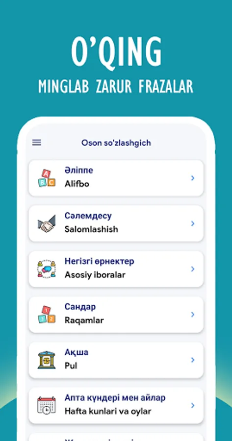 Oson So'zlashgich - Qozoq tilini oson va qulay o'rganing: