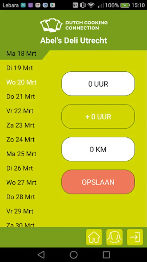 Time registration app for Dutch Cooking Connection