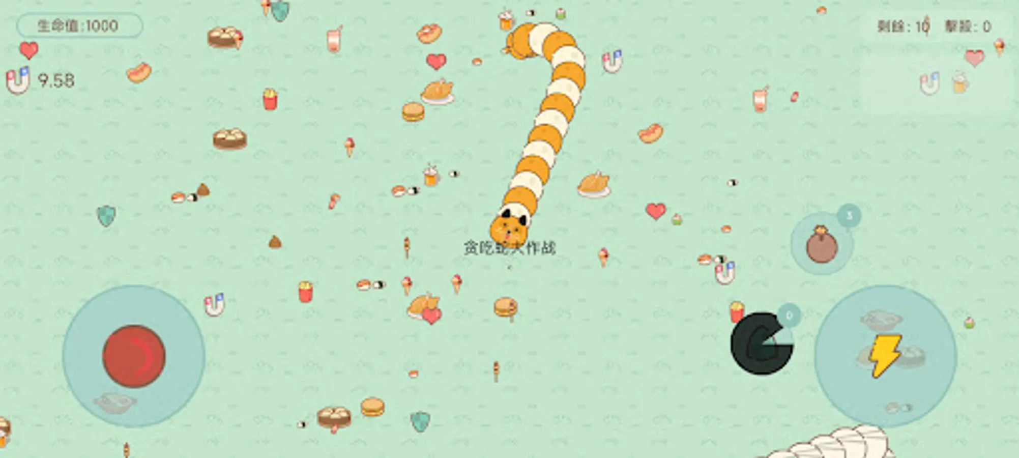 2. Be careful! If the snake's head touches other greedy snakes, it will die and produce a large number of small dots.
