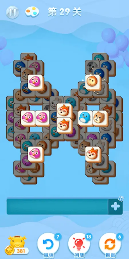 Click on the block element and place 3 of the same element in the collection bar to remove it. Clear all the blocks in the area to win! If the collection bar is full, the game will end.