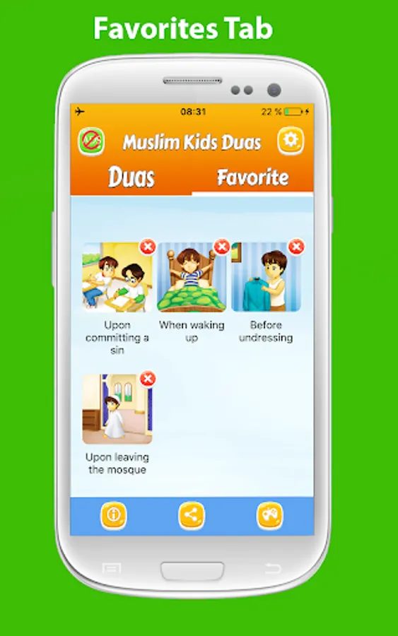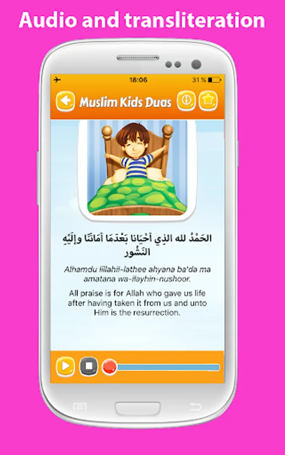 Daily Duas for Kids - Dua Series with arabic Audio is based on the Fortress Of The Muslim book (Quran & Sunnah) which compile all authentic duaa for Muslim to supplicate on a daily basis and on special occasions.