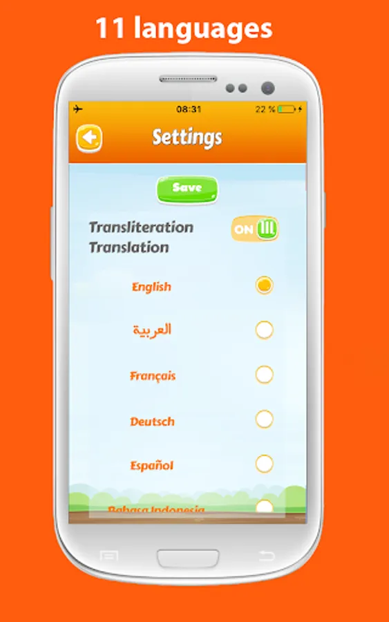 • Transliteration choice helps user in knowing correct articulating Islamic supplications in Arabic.