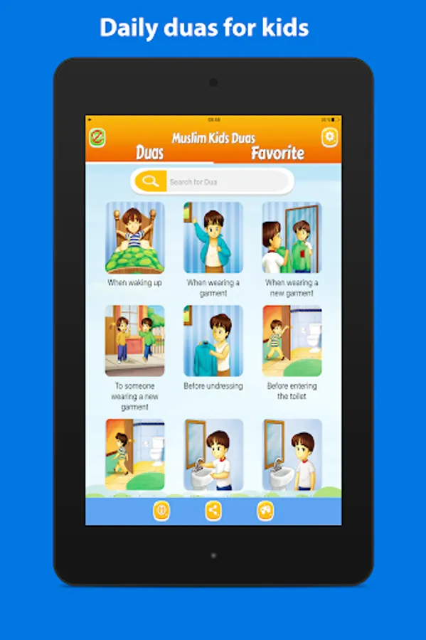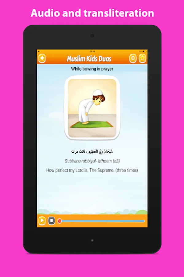 • Daily Duas for Kids - Dua Series with Arabic Audio works on both phone and tablet.