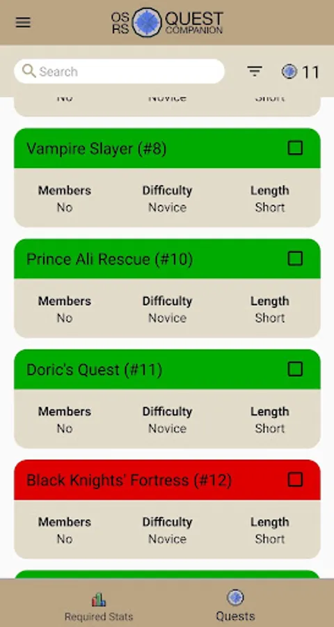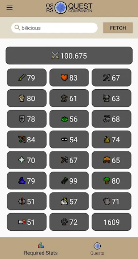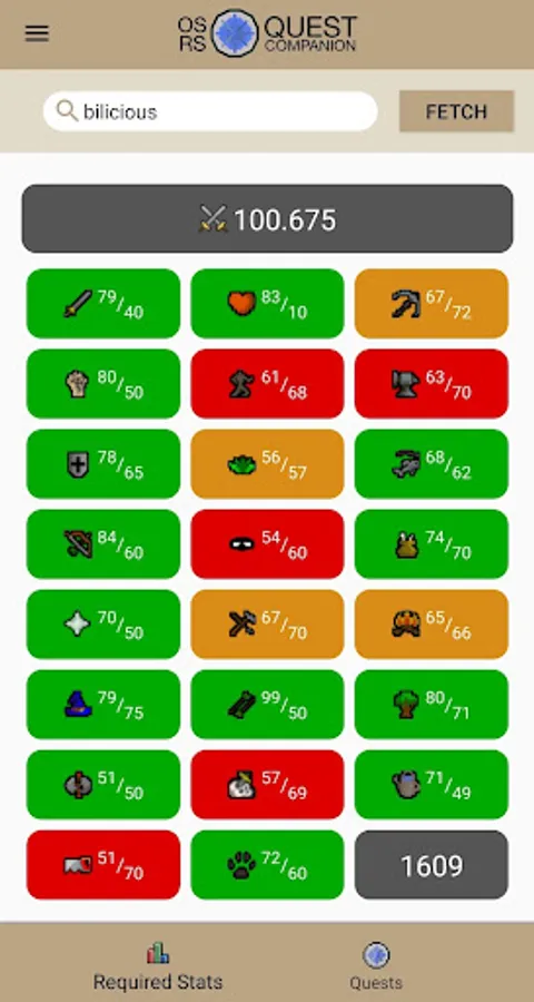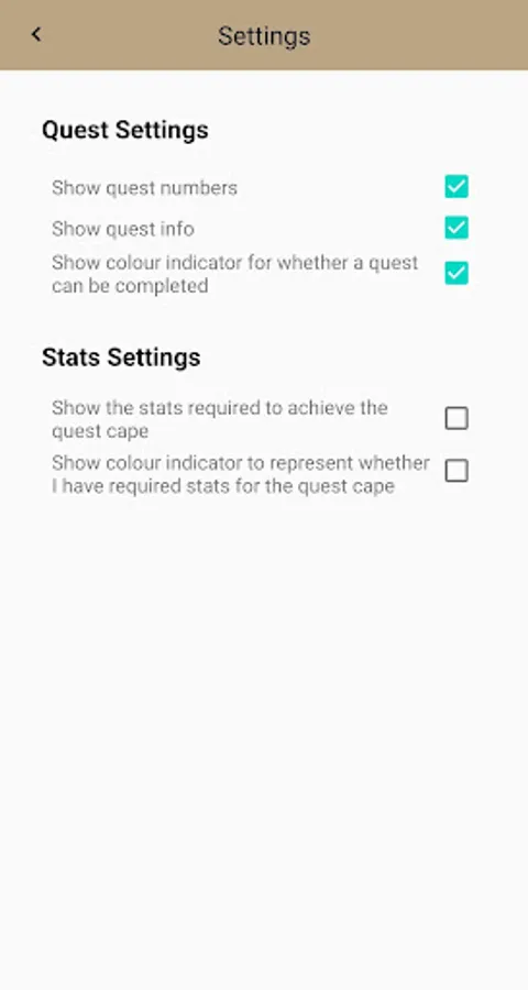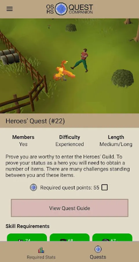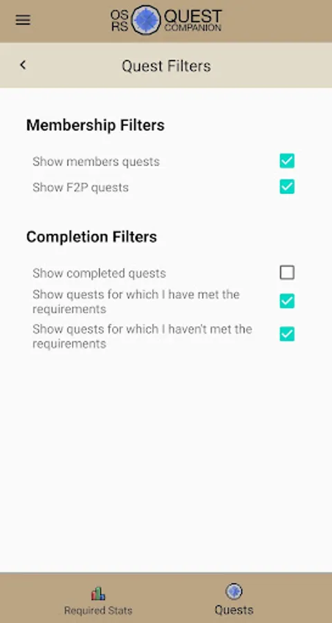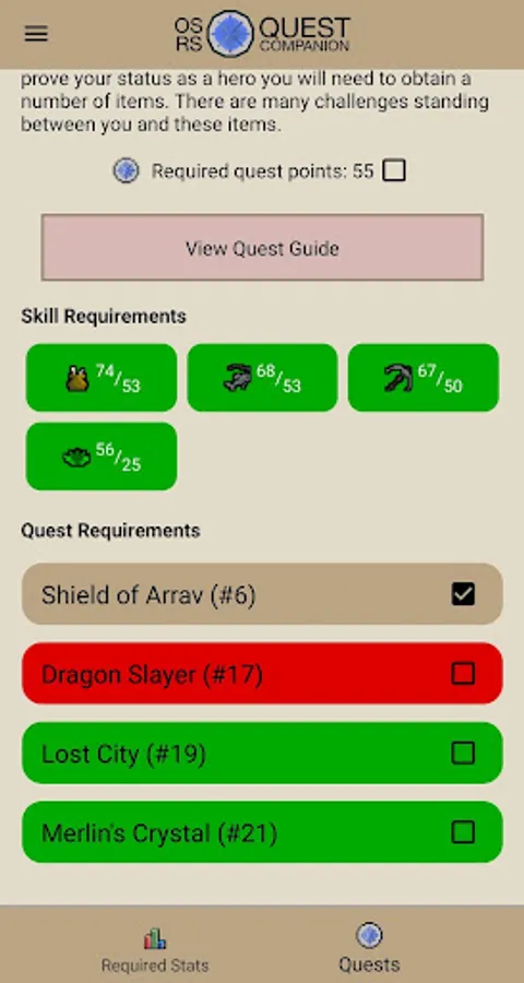 Enable quest point tracking to quickly check the requirements for full quest completion and compare them to your stats using colour indicators. Customise your settings to show only the information you need and use account setup to quickly enter your quest completion data and get up and running in no time!