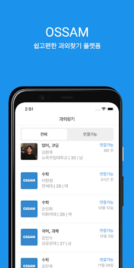 Osam Tutoring is a fee-free tutoring service for tutoring and learning counseling.