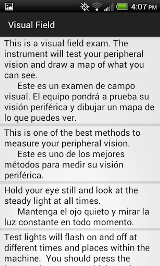 DISCLAIMER: This app is intended as an outline only and cannot include every aspect of an eye exam. Some phrases may vary due to differences in regional dialects. This app is intended for informational purposes only and not for the diagnosis, treatment, or cure of any medical condition or illness. The app should not be used as a substitute for professional medical care or interpretation. Ossibus Software and its writers are not responsible or liable for the use or misuse of the information contained in this app.