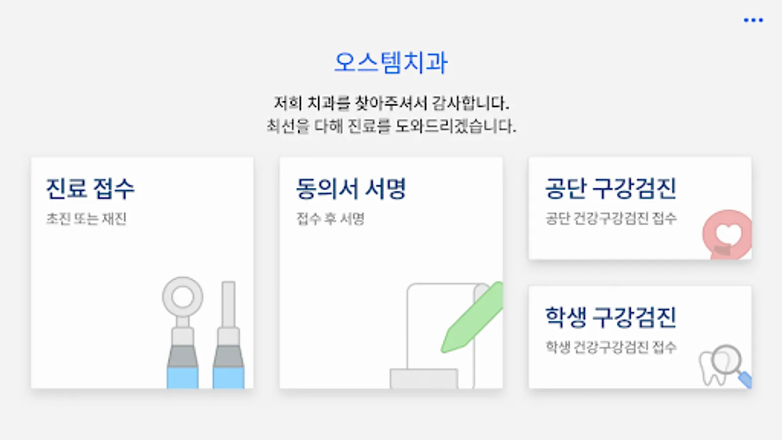 치과를 방문하는 환자가 비대면으로 진료를 접수할 수 있고, 각종 동의서 서명을 진행할 수 있습니다.
