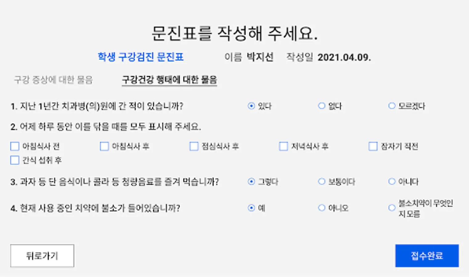- 학생구강검진 대상자 방문 시 해당 환자를 접수할 수 있습니다.