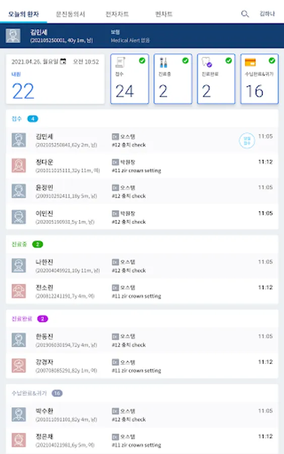 - You can understand the movement of the patient who came to the hospital on the same day. (Reception / Treatment / Treatment Complete / Storage Complete & Return)