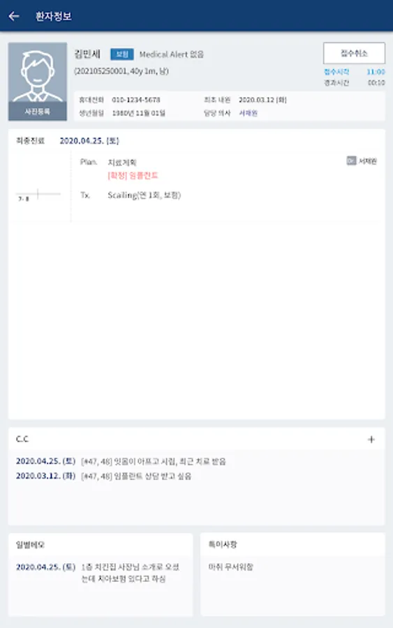 - When receiving a patient through the app, you can check it in the OneClick PC version reception list.