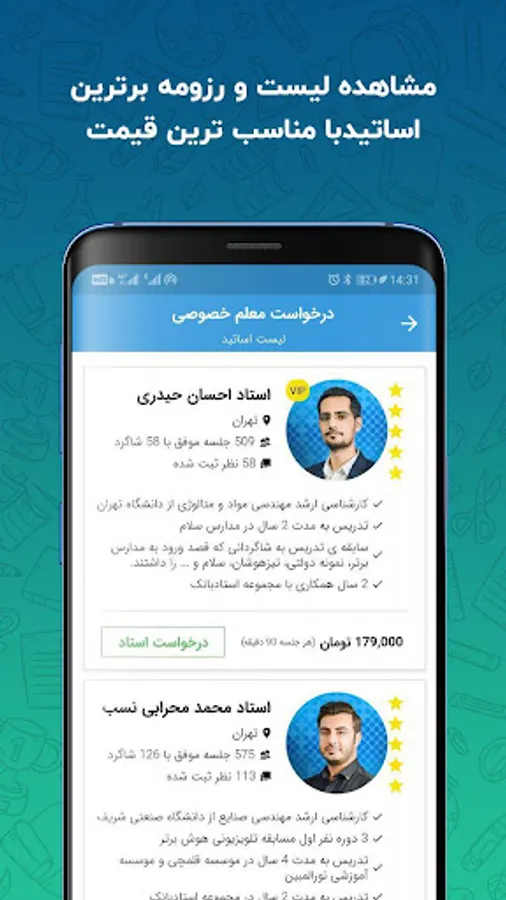 Visibility of the list of top Iranian private professors in elementary, secondary, entrance, university and foreign languages