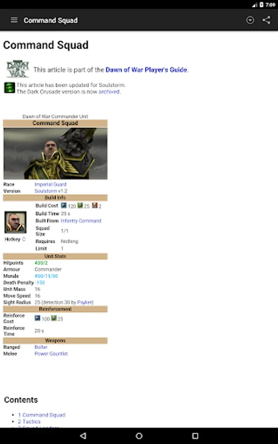 W40K Warhammer Guide - full guide to Soulstorm, Dark Crusade. Units, tactics, game system.