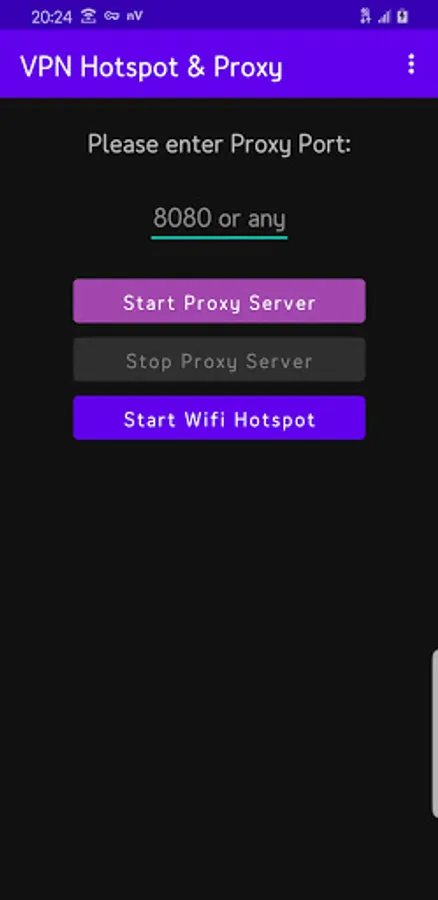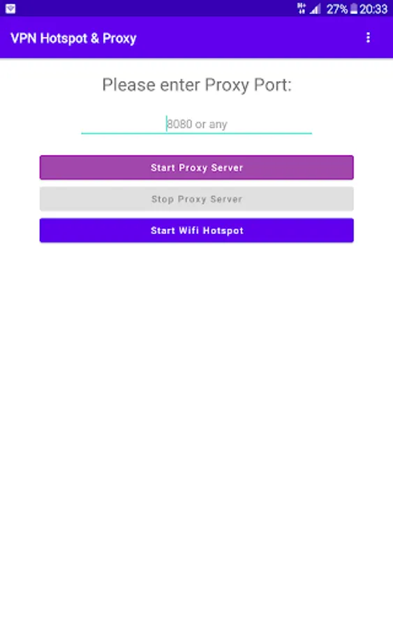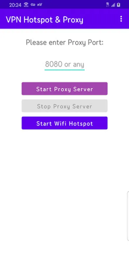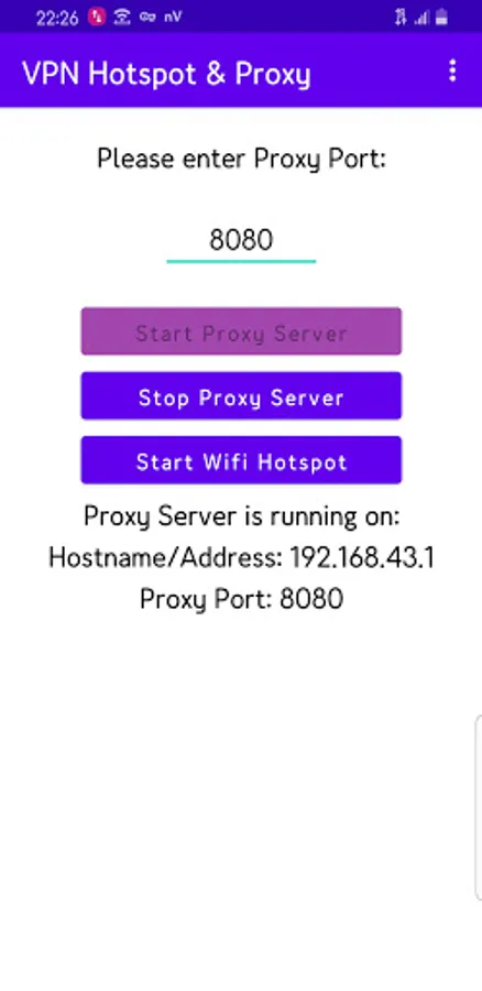 4. Enter the proxy port for instance 8080 or any other port and tap on Start Proxy Server to start the service.