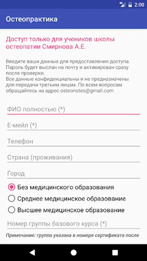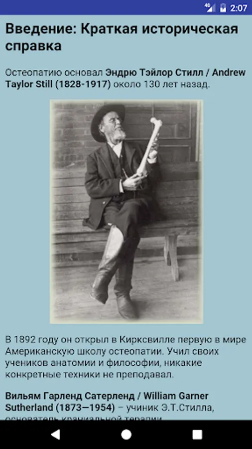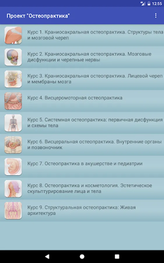 This application contains information from the course of the project "Osteopraktika" practical school of osteopathy Smirnov AE
