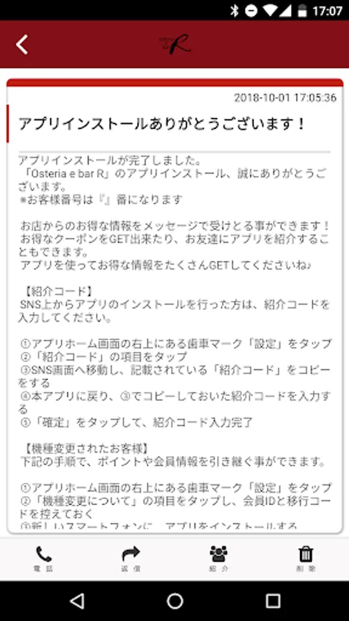 You can introduce Osteria R's app to your friends via SNS.